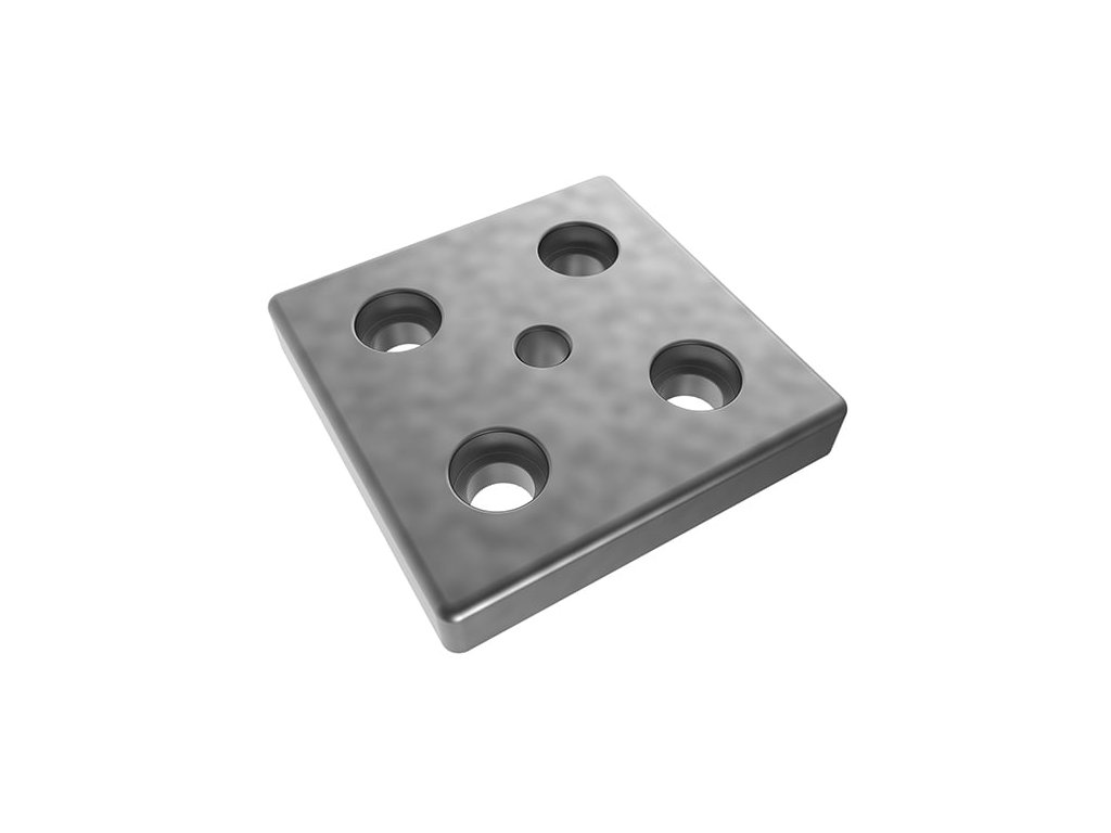 Pro montáž nivelačních nožiček, válečků, háků nebo podobných součástí; připojuje se ke profilu bočně