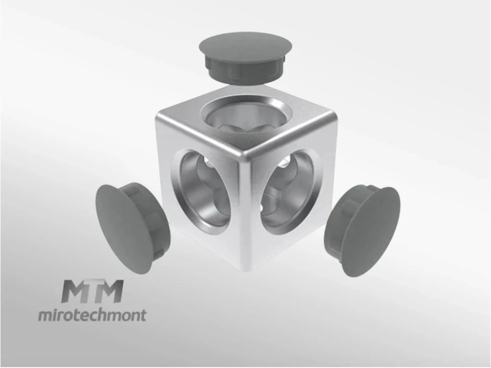 Pro propojení tří hliníkových profilů pod pravým úhlem; s kryty pro zakrytí vrtání