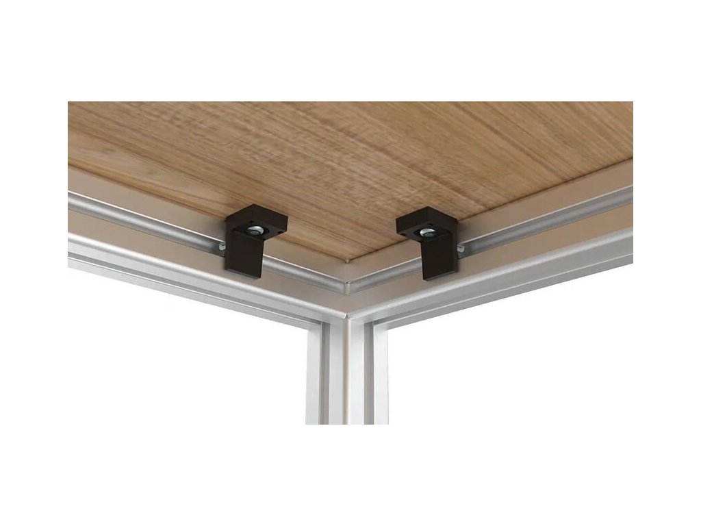 Pro připojení dřevěných stolových desek nebo dřevotřískových desek v pravém úhlu na rám z hliníkového profilu